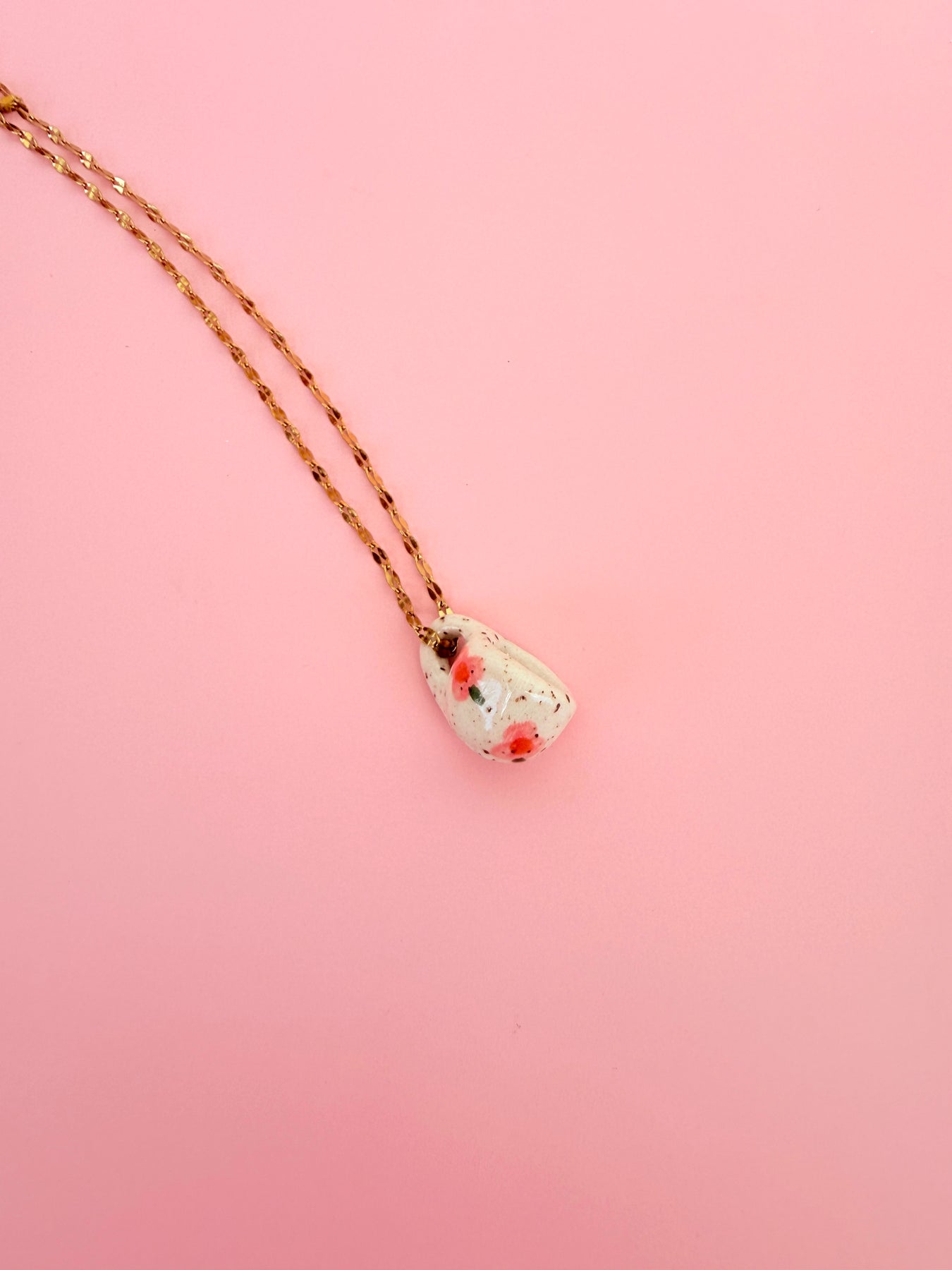 No two pieces are exactly alike — subtle variations in shape, color, and glaze make each pendant one of a kind.