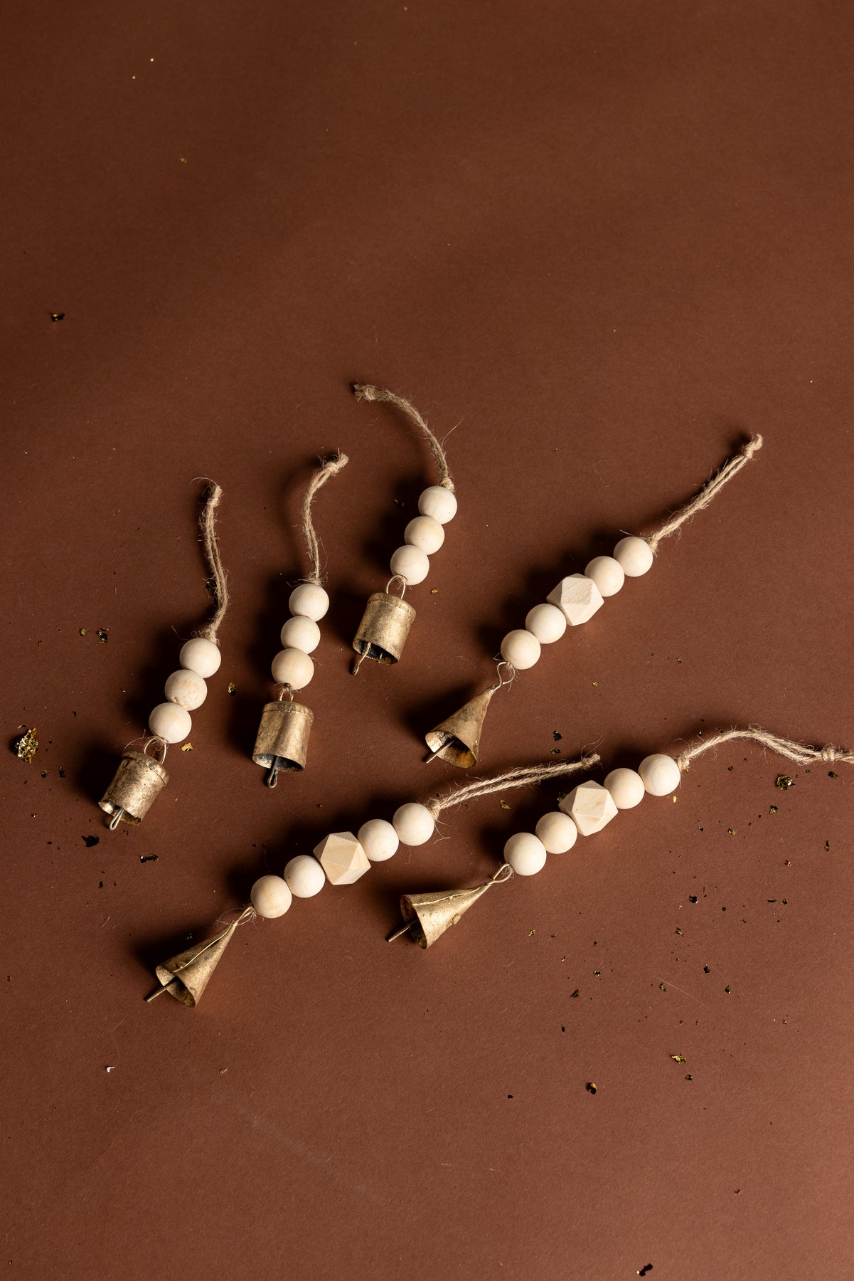 Decorate your tree with style this holiday season! This set of 6 Bells Ornaments are made with wood beads and gold bells, adding a touch of charm and warmth to your home. Hang them on your tree or use them as charming accents throughout your space.