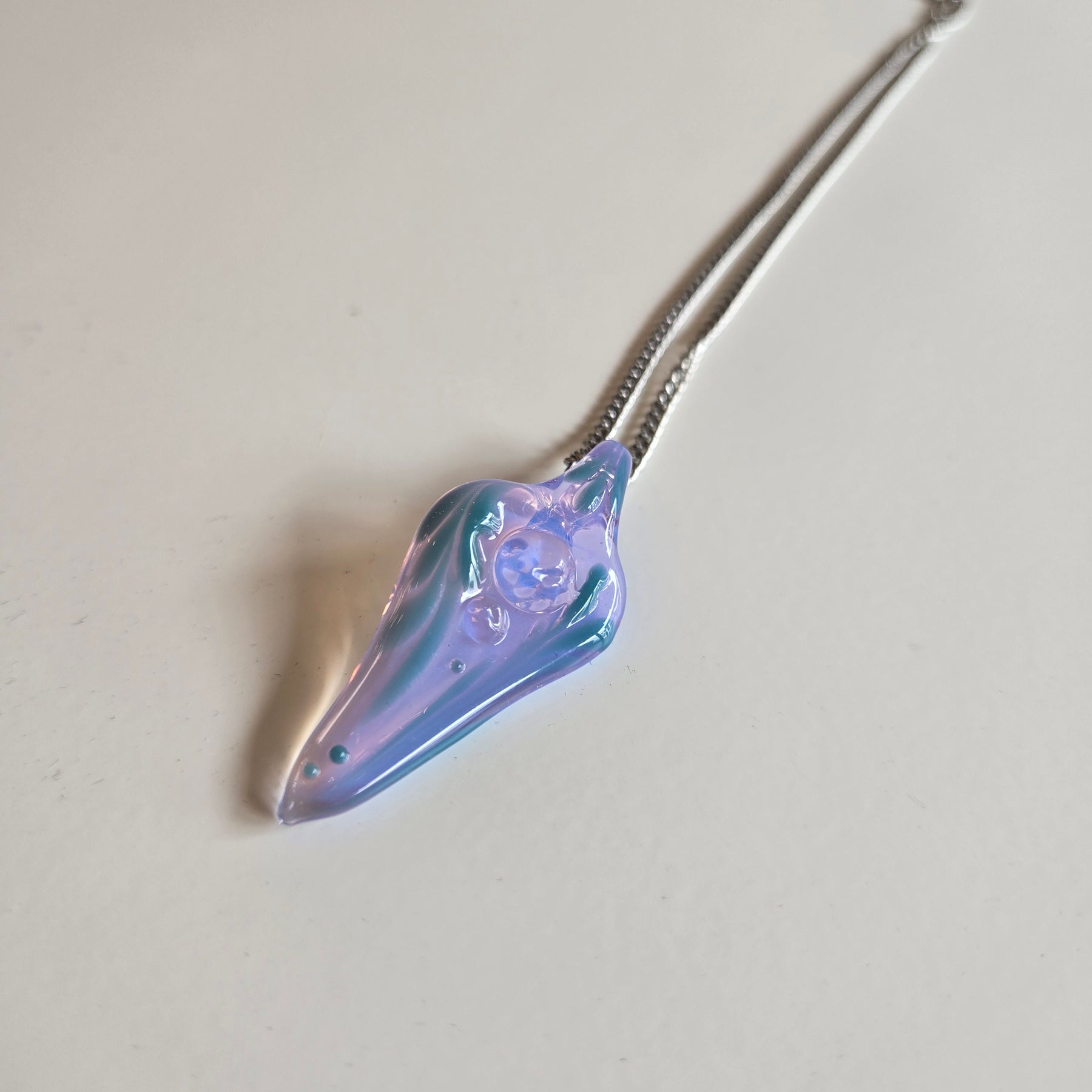 The necklace by artist Powlino features a unique crystal design, highlighting both aesthetic appeal and artisan craftsmanship. The use of high-quality materials ensures durability, while its distinctive design can enhance a variety of outfits. This piece is ideal for those seeking a refined accessory that stands out.