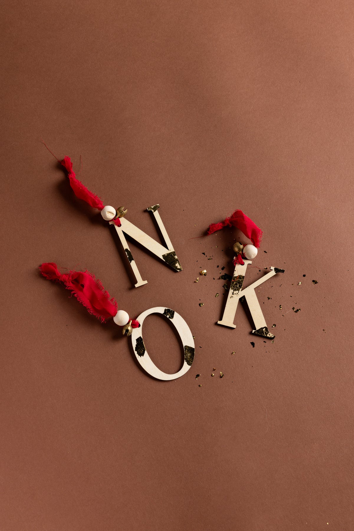 Add a personalized touch to your holiday decorations with our custom Letter Ornament. Made of laser-cut wood, it features a delicate chiffon ribbon, a festive bell, and a wooden bead. Perfect for adding a boho-modern twist to your Christmas tree.